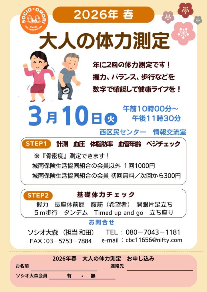 そのほかにも3月10日に大人の体力測定も開催されますので奮ってご参加下さい。