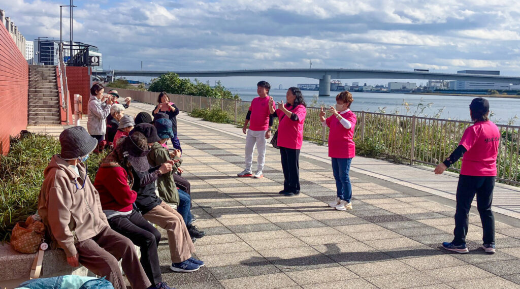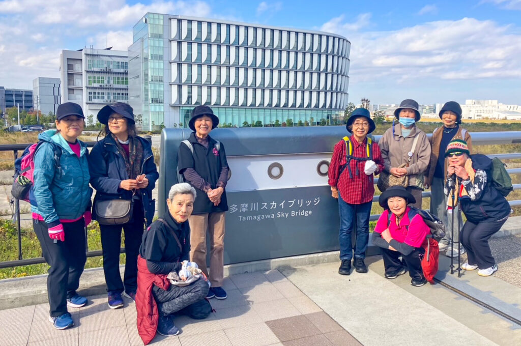 2025年秋のハイキングは多摩川近郊に行きました。青空の中に白い雲、とても気持ちの良いハイキング日和の中でソシオ大森会員の皆様と散策を楽しみました。