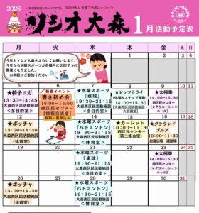 2026年度1月のソシオ大森プログラムやイベントの予定をご案内いたします。1月は椅子ヨガの会場が多目的室に変更したり、水曜スポーツの開催日程が変更したりと変更点が多々ございます。プログラムカレンダーをご確認ください。また […]